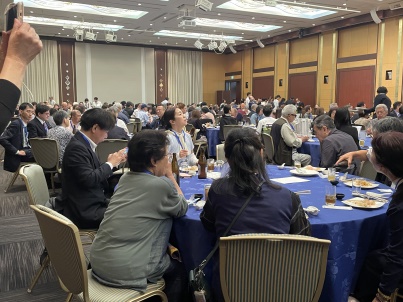 出入りが簡単なようにと,1階のレストランが準備されていました。円卓に並べられた山海の珍味をありがたくいただきました。
