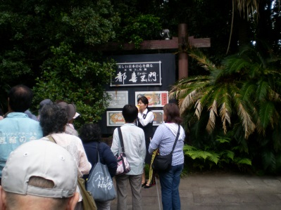 この神社は,伊作島津家第10代城主島津忠良を祀り,多くの文化財がある神社です。人生の訓話を含む47首のいろは歌の歌碑が立つ並木道は「いにしへの道」と呼ばれ,地元のボランティアの方のわかりやすく,ユーモアにあふれた説明に,終始楽しく過ごすことができました。