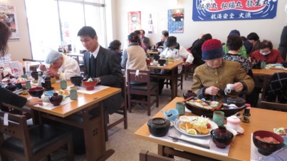 昼食は,海鮮丼やお寿司など3種類のメニューの中から,予めそれぞれが選んで注文しておいた,海の幸を中心とした食事を,お腹いっぱい堪能しました。